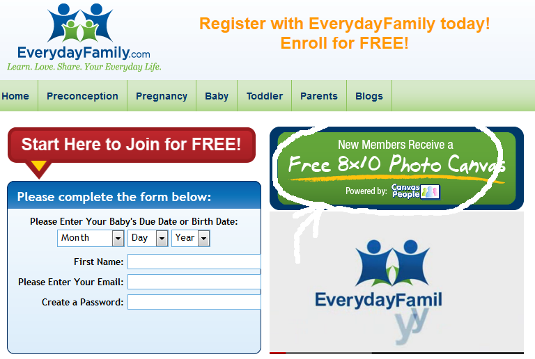 Join Everyday Family (FREE) and get a FREE 8×10 Photo Canvas from Canvas People!!! Click below then look for the link for your free canvas (see photo below for where to click on the site).