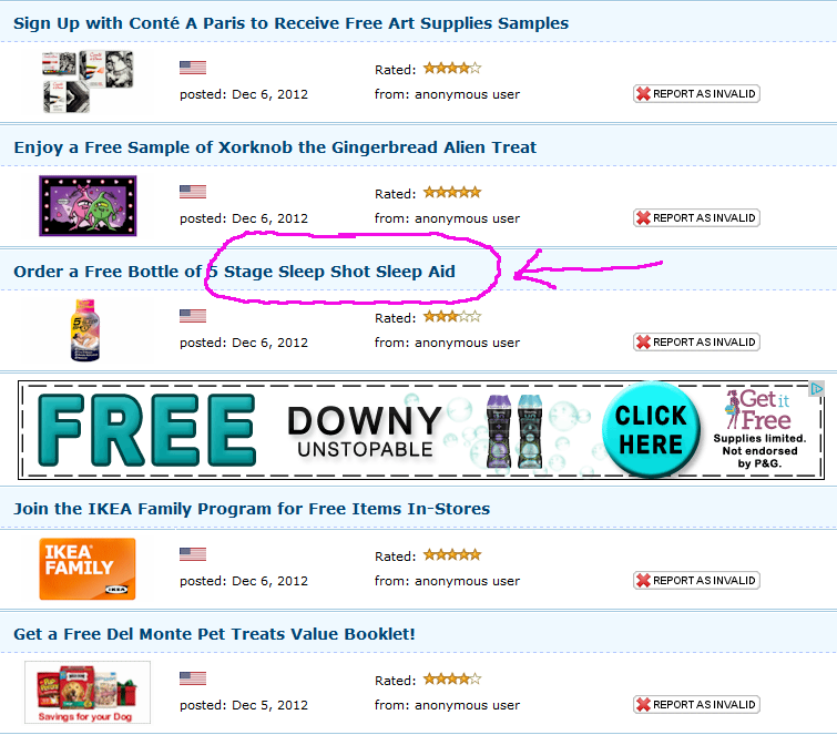 Tons of free samples, including Stage 5 Sleep Shot and Art Supplies!