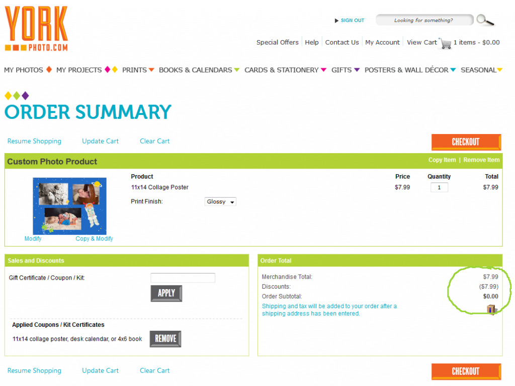Just for you from York Photo, get a FREE photo collage, 4×6 Book or Desk Calendar. Click Here for yours! I chose the adorable photo collage and shipping was only $2.39!