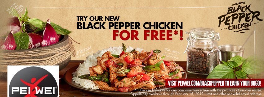 Pei Wei coupon for Buy 1 Entree Get 1 FREE! You will watch a short video then enter your email address for your BOGO coupon!