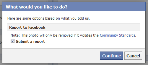 click on ‘I think it shouldn’t be on Facebook’ and ‘continue’
