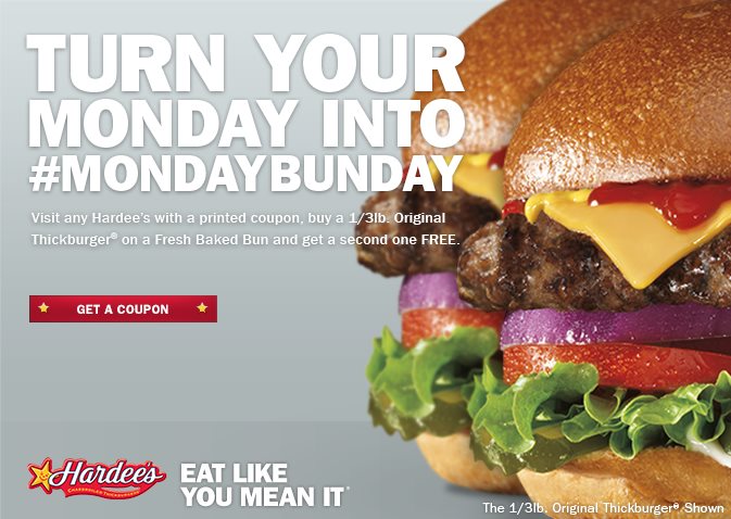 FREE 1/3 pound ThickBurger at Hardees on Monday!