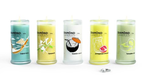 Diamond Candles invites you to take something ordinary and make it extraordinary, by combining the scents of premium 100% soy candles with an exciting and fun ‘ring reveal.’ When the candle burns out the thrill begins, with a surprise ring inside (valued at $10, $100, $1,000, or $5,000!) that can be worn for years to come. Light the wick of your scented Ring Candle™, to experience unsurpassed bliss – a clean fragrance that fills up a room and takes you away to paradise.