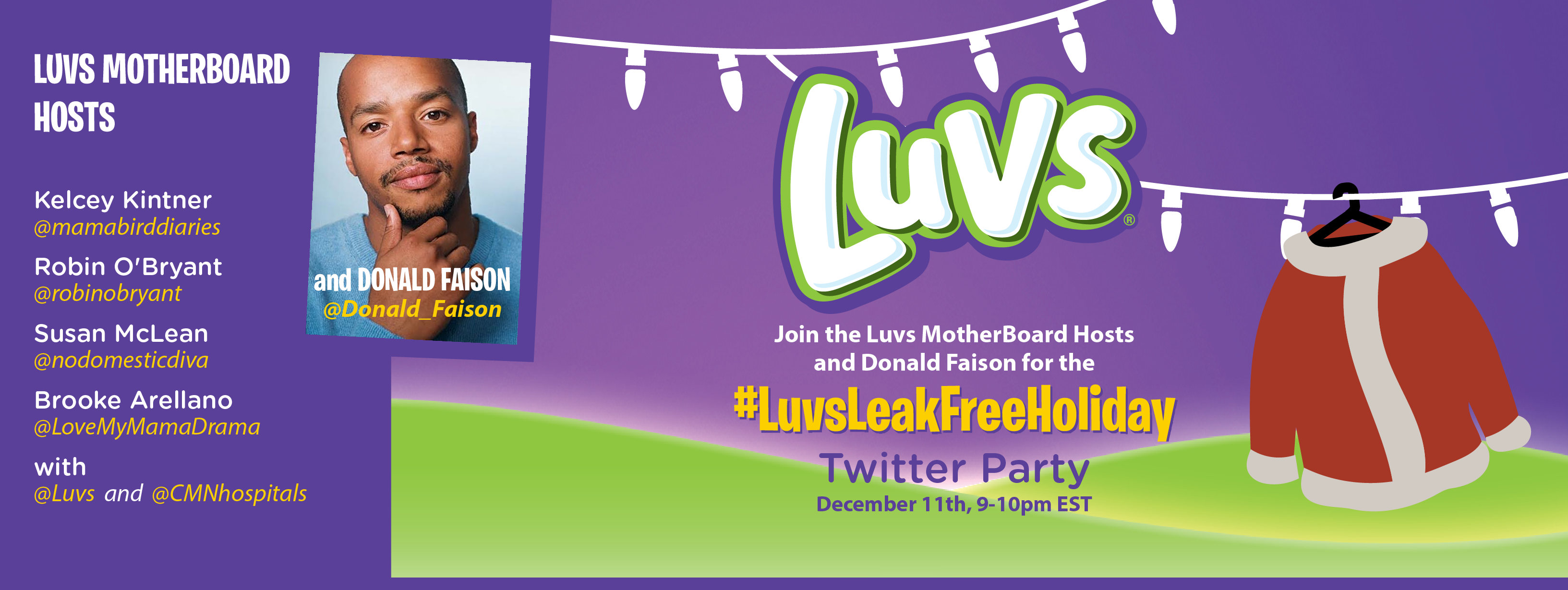 And how about this? Please join Luvs and celebrity dad, expectant father and Donald Faison for a #LuvsLeakFreeHoliday Twitter Party on Thursday, December 11th, from 9-10pmEST, where we’ll be sharing personal holiday leak stories.