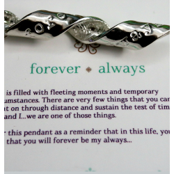 We were sent this beautiful necklace/pendant. It’s solid sterling silver twisted into elegant spirals with fluid, ribbon-like grace. Stamped onto the pendant are the words ‘Forever Always’ so that special someone always remembers that they are loved. It goes perfect with an outfit for an evening out, or to dress up a t-shirt. The sterling silver will always be beautiful and will be a treasured gift. This comes from their Inspirals collection. There are several selections from which you can choose, or you can even personalize your own!